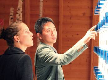 | ▲ 독일 현지인에게 작품을 설명하는 신봉철씨. |