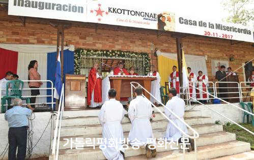 | ▲ 파라과이 카아쿠페 꽃동네 자비의 집 개원 감사미사가 현지 교구장 라카르도 발렌수엘라 주교 주례로 봉헌되고 있다. 예수의꽃동네유지재단 제공 |
