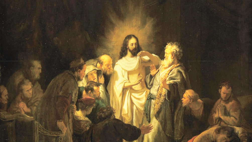 수난의 상처를 간직한 스승이 잠긴 문을 뚫고 나타나 제자들에게 인사했다. “평화가 너희와 함께!”(요한 20,19) 불안에 떨던 제자들은 스승을 ‘다시 만남’(부활)으로써 평화를 되찾았다. “그리스도는 우리의 평화이십니다.”(에페 2,14) 이런 맥락에서 자기 밖·안·옆에서 “평화를 이루는 사람”(마태 5,9)은 ‘부활의 증인’(하느님의 자녀)이다. 부활하신 그리스도는 토마스에게 부활 신앙의 의미를 밝힌다. “보지 않고도 믿는 사람은 행복하다.”(요한 20,29) 신앙은 ‘만남에 대한 확신’으로 해석될 수 있다. ‘보지 않고도 이루어지는 만남’은 ‘대면의 만남’(자기 옆)을 넘어선 ‘비대면의 만남’(자기 밖, 자기 안)을 의미한다. 이에 대한 확약이 “성령을 받아라.”(요한 20,22)이다. 제자들 ‘안에 머무르는 성령’(갈라 4,6 참조)의 열매 중 하나는 “평화”(갈라 5,22)다.