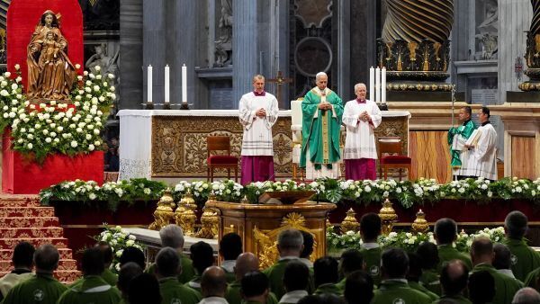 레오 14세 교황이 11월 16일 성 베드로 대성전에서 '가난한 이들의 희년' 미사를 집전하고 있다. OSV