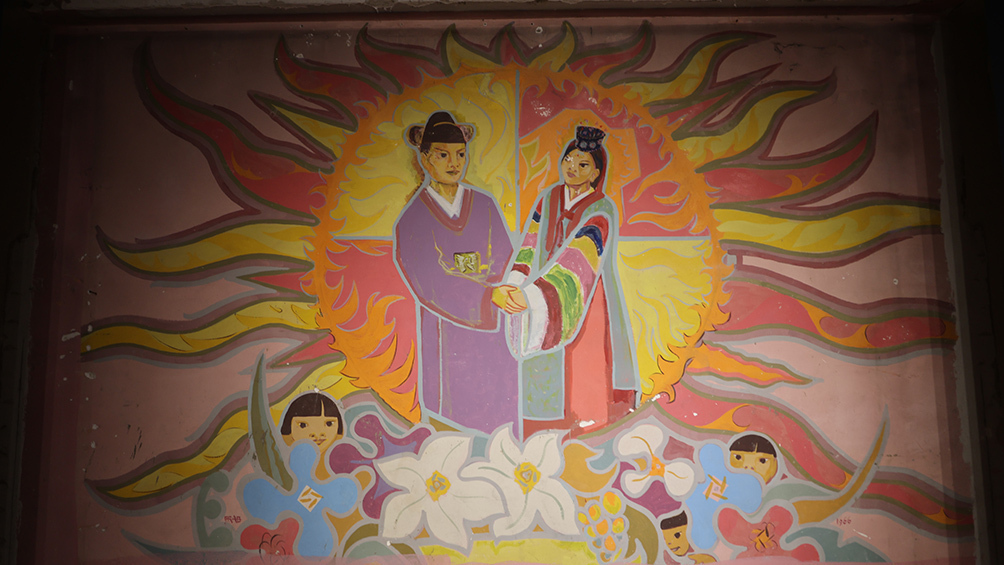 성 베네딕도회 소속인 부통 신부는 1966~1976년 10년간 성 베네딕도회 왜관수도원에 머물며 경북을 중심으로 전국 성당·공소에 성화 벽화 200여 점을 그렸다. 과거 안동예식장이었던 이곳 도시재생지원센터 1층에는 부통 신부가 한국에 온 첫해인 1966년 제작한 벽화가 있다. 한국 전통 혼례 모습을 묘사한 작품으로 최초이자 유일한 민속화다.
