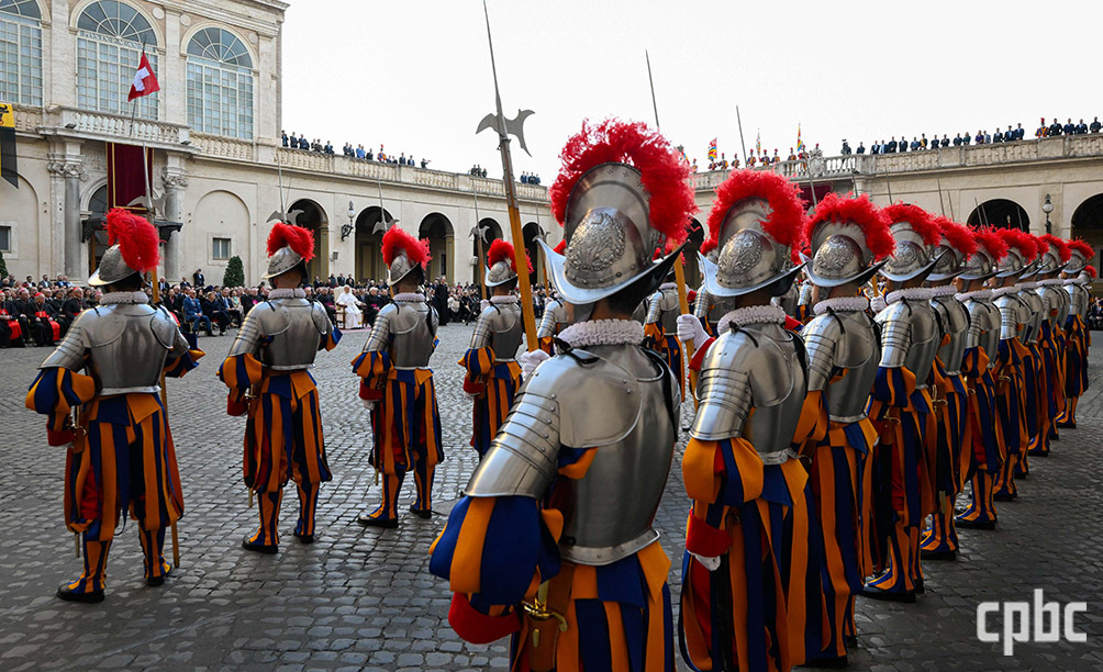 교황청 스위스 근위대 병사들이 바티칸 사도궁 앞에 도열해 있다. OSV