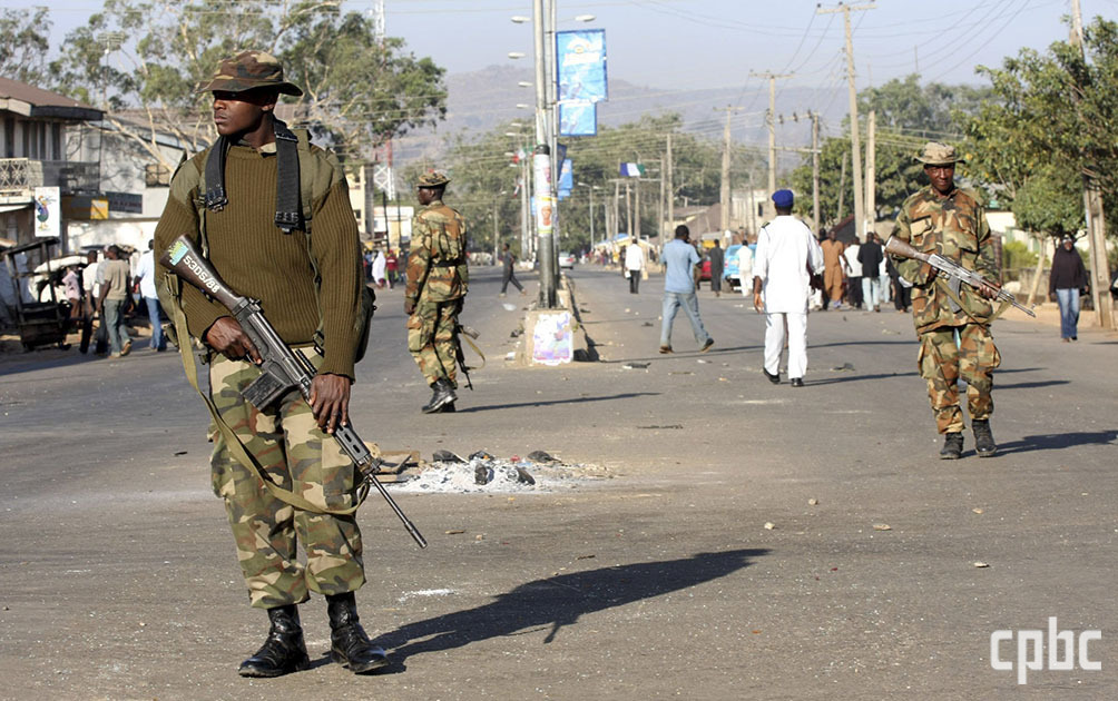 2008년 11월 30일, 나이지리아 조스 시에서 군인들이 순찰을 돌고 있다. 기사와 직접적으로 관련 없음. OSV