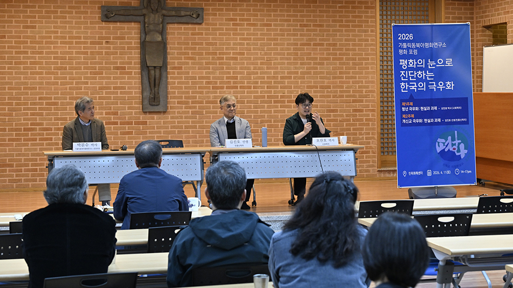 가톨릭동북아평화연구소(소장 이은형 신부)는 11일 경기도 파주 민족화해센터에서 ‘평화의 눈으로 진단하는 한국의 극우화’를 주제로 평화포럼을 열고 한국 사회의 뿌리 깊은 갈등을 조명했다.