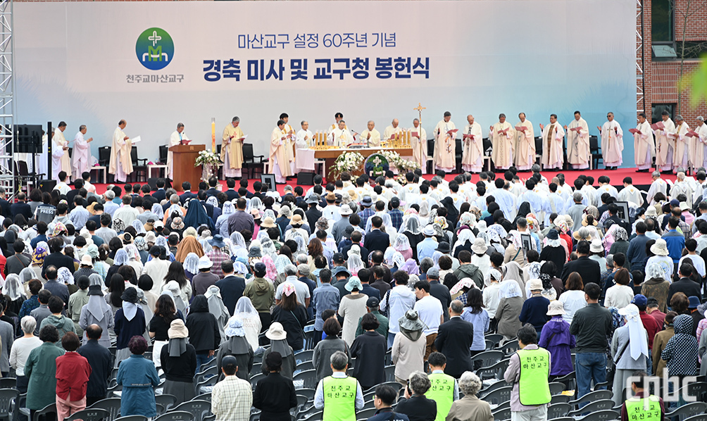 마산교구가 교구 설정 60주년과 새 교구청 봉헌의 기쁨을 함께 나누고자 18일 경남 창원 마산합포구 죽헌로 72 교구청 현지에서 기념 미사를 봉헌하고, 교구 공동체 구성원 모두가 지역 사회와 더욱 하나 되어 100년을 향한 ‘희망의 등불’이 될 것을 다짐했다.
