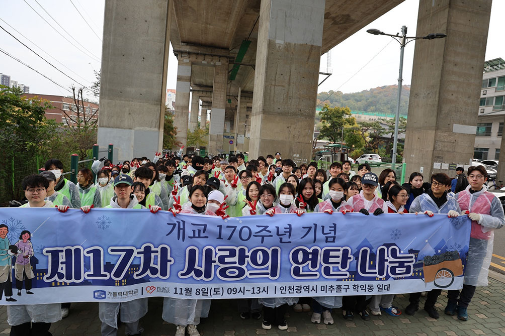 가톨릭대는 이번 제17회 가톨릭대 사랑의 연탄 나눔 봉사활동을 인천 연탄은행과 함께 진행했다. 연탄 4000장은 피스메이커스 지원금과 교내 모금활동으로 마련됐으며, 연탄은 이날 독거노인과 기초생활수급자 가정에 전달됐다.