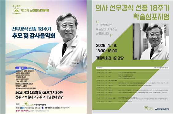 이어 16일 오후 130, 명동 가톨릭회관에서는 '의사 선우경식 선종 18주기 학술심포지엄'이 열린다. 마태오 복음의 성요셉 영성을 살아낸선우경식 요셉(김승애 수녀, 미리내 성요셉애덕수녀회) 교회 사회 교리로 본 선우경식과 요셉의원(김평만 신부, 가톨릭중앙의료원) 시노달리타스로 비춰본 선우경식 선생의 삶(최현순, 서강대 전인교육원) 화의 소명에 응답하는 한국 천주교 평신도: 선우경식 선생의 삶과 신앙을 중심으로(김선필, 서강대 신학연구소) 등 주제 발표가 진행된다. 이후 교황청 국제신학위원회 위원 박준양 신부의 사회로, 이경식 가톨릭의대 명예교수, 재단 사무총장 홍근표 신부, 한국교회사연구소장 조한건 신부가 참여하는 종합토론이 이어진다.