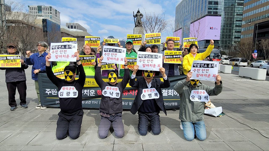 최근 정부가 제11차 전력수급기본계획에 따라 신규 핵발전소 2기와 소형모듈원자로(SMR) 건설 방침을 밝히고, 1월 말부터 부지 유치 공모를 진행했다. 이에 따라 울산 울주군, 부산 기장군, 경북 영덕군·경주시 등 4개 지자체는 공모 마감일인 3월 30일을 앞두고 유치 신청서를 제출했다.