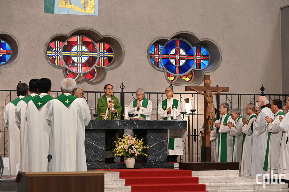 19일 히로시마교구 간온마치성당에서 한일 주교들이 함께 미사를 봉헌하고 있다.
