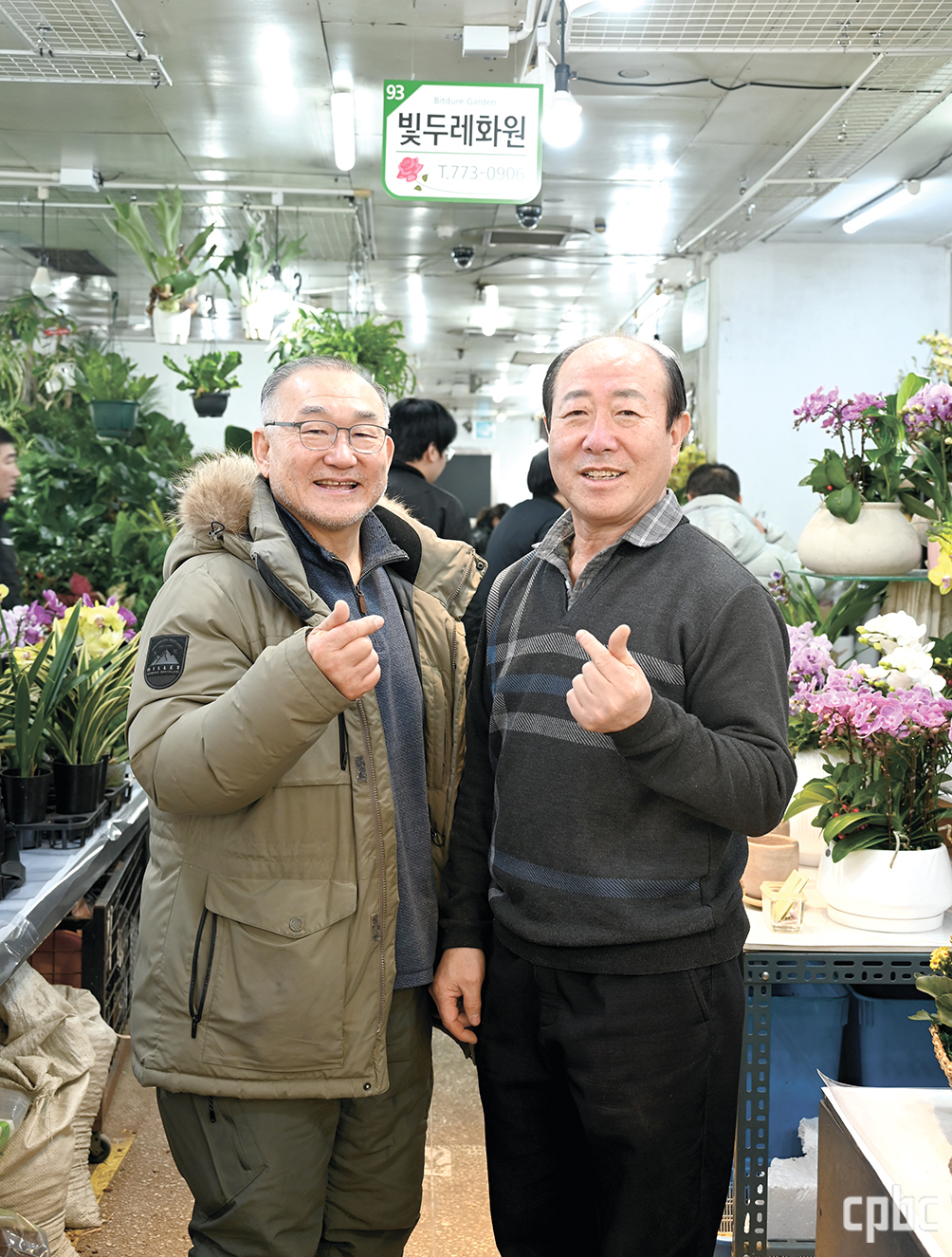 인터뷰를 마치며 흐드러지게 핀 꽃들 사이에서 두 남성이 어깨를 맞대고 섰다. 서로 회장이라 부르는 두 사람의 미소가 꽃처럼 아름답다.