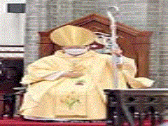 ▲ 제14대 서울대교구장 정순택 대주교가 8일 원죄 없이 잉태되신 복되신 동정 마리아 대축일에 주교좌 명동대성당에서 거행된 교구장 착좌 미사에서 주교좌에 착좌한 뒤 잠시 기도하고 있다. 이날 정 대주교는 미사 강론에