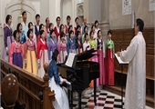 서울대교구 순교자현양회 합창단이 초대 조선대목구장 '하느님의 종' 브뤼기에르 주교 시복 추진을 위해 프랑스를 찾아 파리외방전교회 성당에서 합창하고 있다. 순교자현