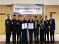 주교회의 생태환경위원장 박현동 아빠스(가운데 왼쪽)와 이상훈 한국에너지공단 이사장(오른쪽)이 업무협약을 한 뒤 기념사진을 찍고 있다. 주교회의 제공 한국 가톨릭교회와 한