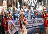 12월 23일 태국 타래-농생대교구 주교좌 성 미카엘 대성당 일원에서 카퍼레이드 중 가톨릭 미션스쿨의 브라스 밴드가 행진하고 있다. 브라스밴드와 화