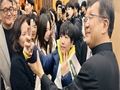 12월 20일 곽진상 주교임명자가 서판교본당 신자들과 인사를 나누고 있다. 12월 20일 곽진상 신부의 수원교구 보좌 주교 임명 발표 직후 곽 주교임명자를 향한 기도와