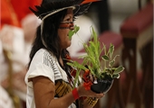 2019년 10월 프란치스코 교황 주례로 바티칸 성 베드로 대성전에서 봉헌된 아마존 시노드 폐막 미사에서 아마존 지역 원주민이 아마존에서 자란 식물을 봉헌하고 있다.OSV