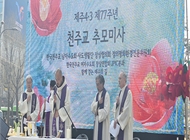 ‘제주 4·3’ 77주년 추모 미사가 3일 서울 중구 청계광장에서 봉헌되고 있다. “국회·정부 협의해 성격