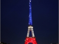 2015년 11월 13일 프랑스 파리 테러를 추모하며, 하루 전날 에펠탑에 프랑스 국기를 상징하는 불빛이 밝혀졌다. OSV 프랑스 파리의 '라 본 비에르