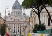 바티칸 성 베드로 대성전과 로마 산탄젤로 성을 연결하는 도로 한 가운데에 도보 설치 공사를 알리는 바리케이트가 설치되어 있다. OSV 교황청 2024 통합 재무 보