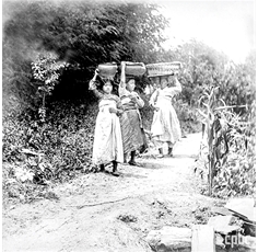 <사진 1> 노르베르트 베버,머리에 짐을 인 여인들’, 유리건판, 1911, 국외소재문화유산재단, 독일 상트 오틸리엔 수도원 아카이브 소장 한국 사진.