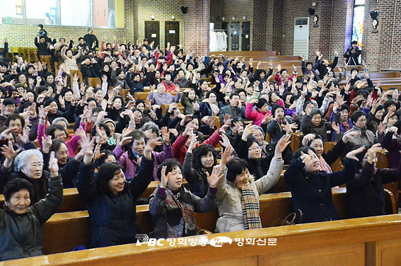 ▲ 11월 24일 주안3동성당에서 열린 인천 남구지구 신앙대회에서 시낮들이 함께 율동찬양을 하고 있다.