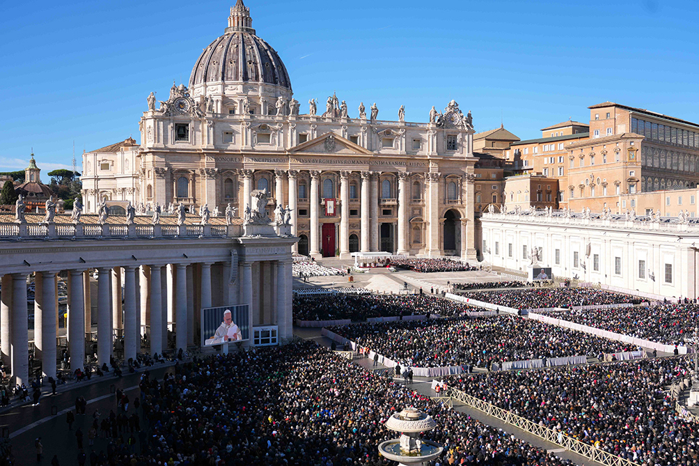 그리스도인들은 교회가 근본적·궁극적으로 하나이고 거룩하고 보편되며 사도로부터 이어 온다고 고백한다. 세계 곳곳에서 바티칸 광장으로 모여든 그리스도인들이 레오 14세 교황이 주례하는 미사에 참여하고 있다. OSV