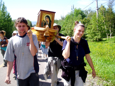 ![]() ▲ 캐나다 청년들이 제49차 세계성체대회 상징인 `새 계약의 궤`를 어깨에 메고 성체대회의 성공을 기원하며 걷고 있다.