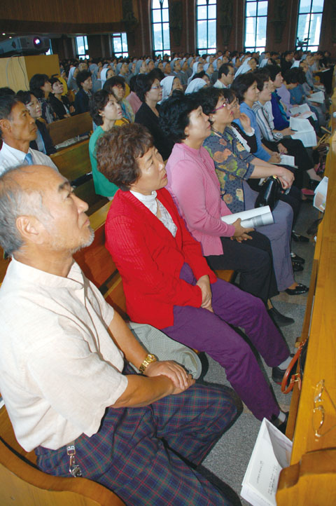 ▲ 제15회 수원교구 심포지엄에 참가한 신자들이 주제발표를 듣고 있다.