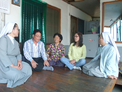 ▲ 박운자 수녀(왼쪽)와 손춘자 수녀가 에멜릿타씨 집에서 이야기를 듣고 있다.