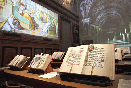 ▲ 바티칸 도서관 전시회장에 전시된 옛 성경들