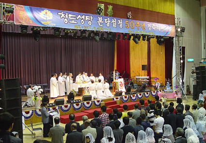 대구대교구 청도본당(주임 함영진 신부)은 5일 경북 청도군 화양읍 모계고등학교 관재관에서 본당 설정 50주년 경축미사를 봉헌하고, 공동체가 하나되는 잔치 한마당을 열었다.
