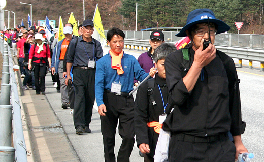 원주교구 횡성지구가 마련한 순교자 시복시성을 위한 도보성지순례 참가자들이 신앙 선조의 얼이 깃든 길을 따라 걷고 있다.