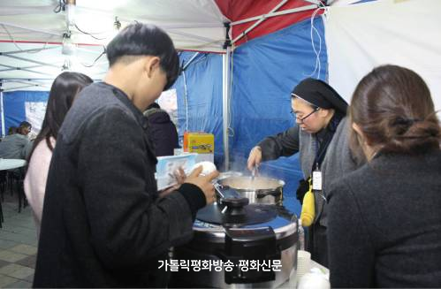 | ▲ 거리 상담소 ‘별사탕’을 찾는 청소년들에게 붕어빵을 나눠주고 있다. |