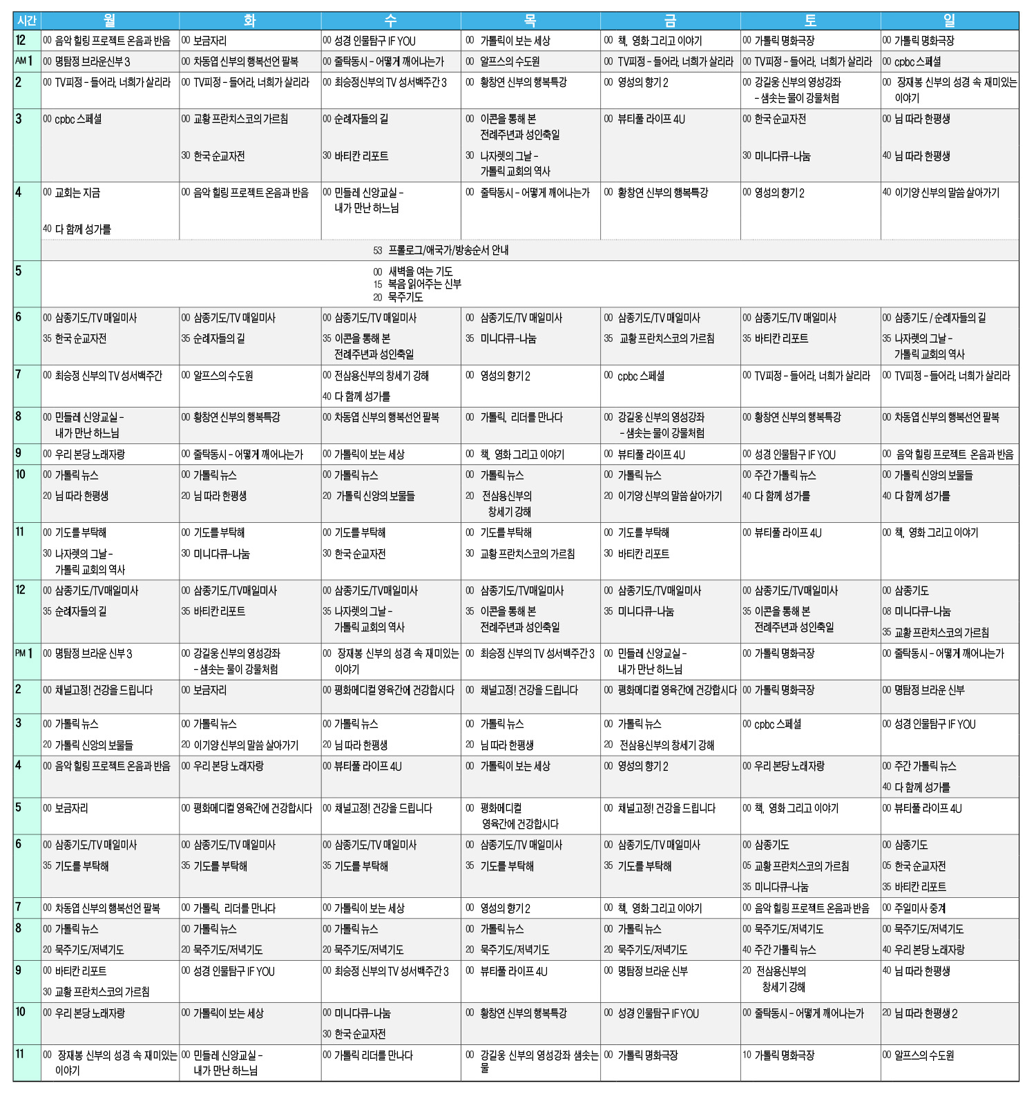 월~금에는 생활 성가 가수 박명선(수산나)씨의 진행으로, 주말엔 김용주(스테파노)씨의
