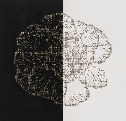 | ▲ 곽도희 작 ‘꽃의 기운데 눈이 취하다’, 벨벳 원단 위에 블랙스톤, 2017년. |