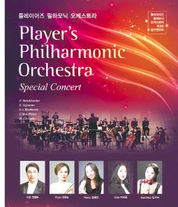 플레이어즈 필하모닉 오케스트라(단장 라경숙)는 11월 1일 오후 7시 30분 경기 성남아트센터 콘서트홀에서 ‘스페셜 콘서트’를 연다. 음악 감독 및 상임 지휘자 전형부(안젤로)씨가 지휘하며 플루티스트 라경숙(안젤라)씨와 비올리스트 박지윤씨, 마림비스트 김수지씨 등이 연주자로 나서 멘델스존의 ‘핑갈의 동굴’, 세주네의 ‘미림바 협주곡’, 베토벤의 피아노협주곡 ‘황제’ 등을 연주한다.