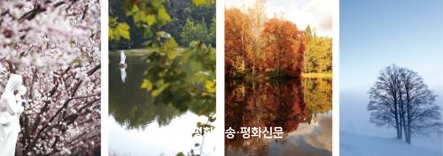 ▲ 올해로 사제 수품 31년, 삶의 시간으로 환갑을 맞는 손희송 주교는 “마음의 양식이 되는 따뜻한 밥 한끼 대접한다는 마음으로 책을 펴냈다”는 소회를 밝혔다. 그림은 왼쪽부터 봄, 여름, 가을, 겨울의 풍경. 【CNS】 |