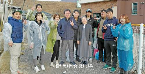 ▲ 춘천교구 운교동본당 사제와 수도자, 청년들이 2일 연탄 나눔 봉사를 실천하고 기념 촬영을 하고 있다. 춘천교구 문화홍보국 제공 |