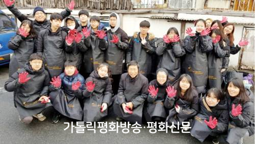봉사단은 12월 23일 서울 노원구 상계동을 찾아 겨울철 난방에 어려움을 겪고 있는 홀몸노인과 기초생활수급자 등 6가구에 연탄 1200장을 전달했다. 중고등부는 올초부터 연탄 나눔을 기획하고 직접 묵주와 초 등을 만들어 본당 신자들에게 판매하며 연탄 기금을 마련했다. 유은재 기자