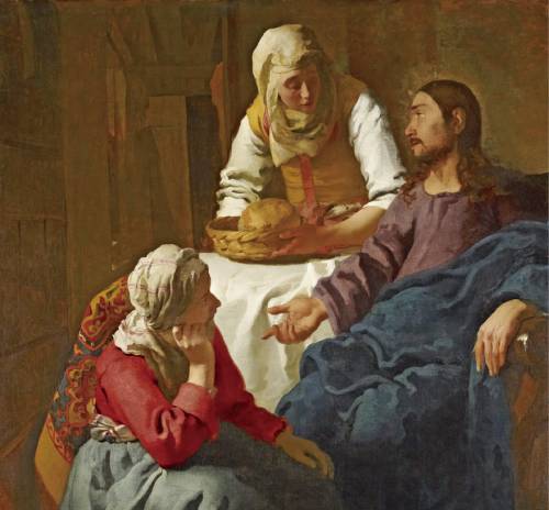 ▲ 안셀름 그륀 신부는 묵상과 기도는 내 마음을 주님께서 드나드는 ‘하느님의 자리’로 만들어야 한다면서 일상 속 피정을 강조한다. 그림은 요하네스 베르메르의 ‘마르타와 마리아의 집에 있는 그리스도’. |