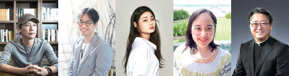 | ▲ 왼쪽부터 원동연 대표(심사위원장), 민규동 감독, 정하담 배우, 유원정 기자, 조정래 신부 |