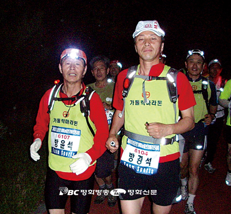 방윤석·경석 형제신부가 100㎞ 울트라마라톤대회에서 달리고 있다.