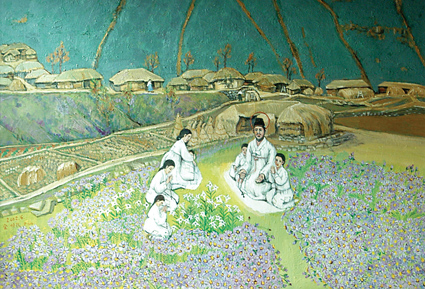 그림은 뒤뜸이 교우촌에서 기도를 바치는 이성례 일가족.
