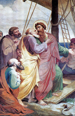 원로들은 사도를 다시 볼 수 없을 것 같아 그의 목을 껴안고 입을 맞추었다.(사도 20,37)