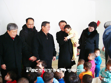 사진은 지난해 12월 황해북도 사리원시 소재 보육원을 방문해 한 어린이를 안아주는 의정부교구 민족화해위원회 위원장 이은형(왼쪽에서 네 번째) 신부와 각 교구 민족화해위원회 사제들.