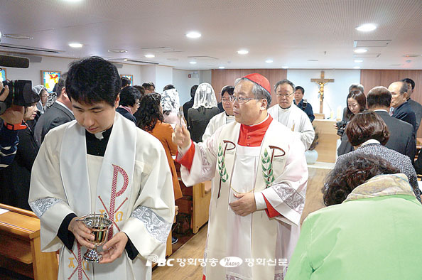 ▲ 염수정 추기경이 예비신학생 기숙사 베리따스를 축복하고 있다. 임영선 기자 |