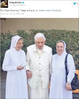 그렉 버크 교황청 대변인도 이날 베네딕토 16세가 두 수녀의 예방을 받고 숙소 앞에서 찍은 사진을 트위터<사진>에 올려 위독설을 잠재웠다. 베네딕토 16세는 바티칸 성 베드로 대성전과 정원 사이에 있는 교회의 어머니 수도원에서 생활한다.