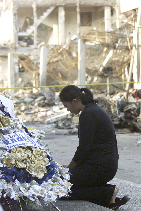 | ▲ 한 여성이 180명 넘는 사망자가 발생한 발리 폭탄 테러(2002년 10월) 현장에서 희생자들을 추모하고 있다. [CNS 자료 사진] |