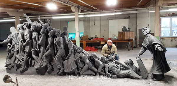 ‘억눌린 이들을 자유롭게 하라’ 군상은 바티칸 성 베드로 광장에 설치될 예정이다. 광장에는 티모시 슈말츠의 대형작이 이미 한 점 설치돼 있다. 2019년 이주난민 140명의 모습을 실물 크기로 형상화한 ‘우리가 알아채지 못한 천사들(Angels Unawares)’이다.
