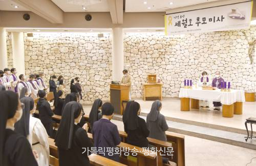 | ▲ 세월호 참사 8주기를 맞아 사제와 수도자, 신자들이 11일 서울 정동 프란치스코교육회관에서 추모 미사를 봉헌하고 있다. |